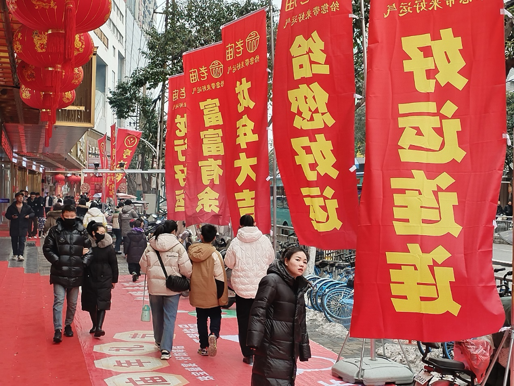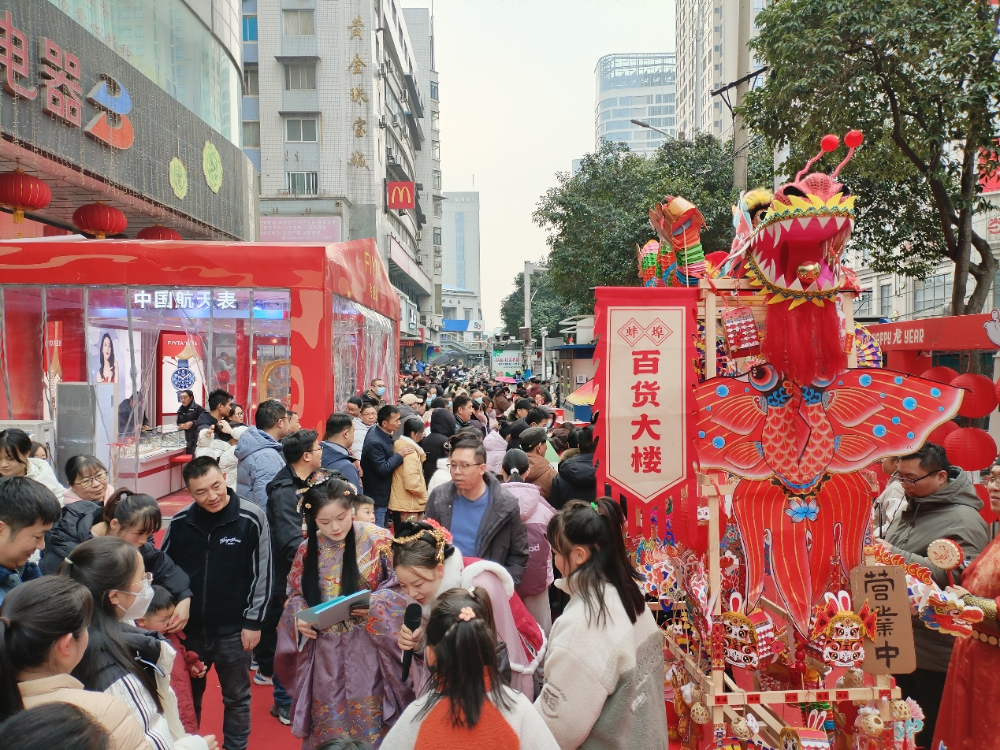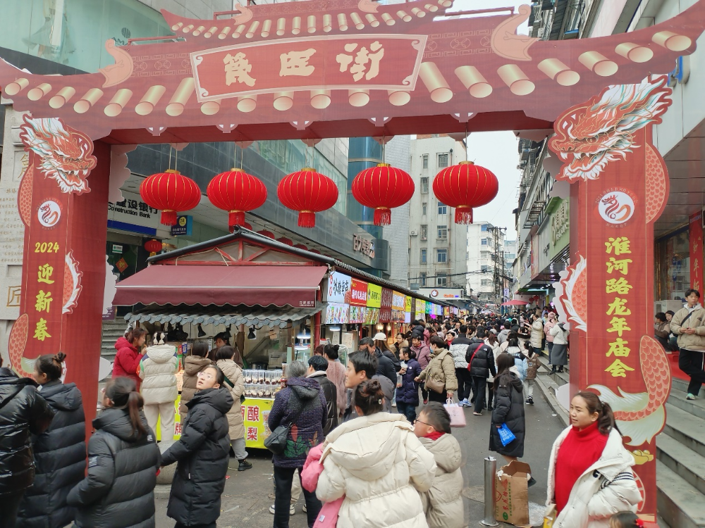 琳琅满目的年货、精彩的民俗表演、各式各样的非遗展……由蚌埠市商务和外事局、蚌埠市文化体育旅游局、蚌山区人民政府主办的2024年“迎新春·淮河路龙年庙会”如火如荼地开展,现场吸引了广大消费者和游客,一幅“新春上河图”跃然眼前。