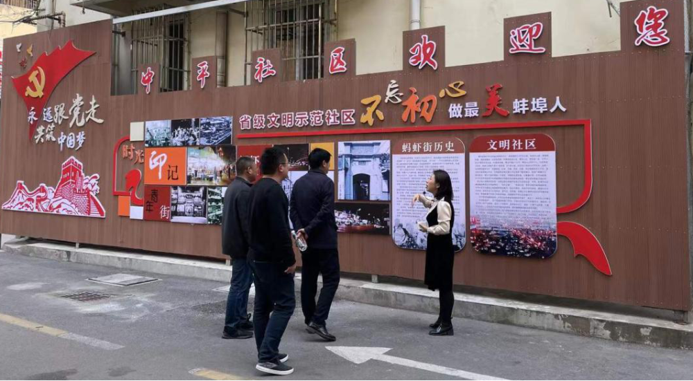 3月11日,市文明办副主任王守军、区文明办主任刘浩携相关检查组工作人员到中平社区进行对蚌埠市星级文明社区验收工作,中平社区党委书记张慧现场讲解。