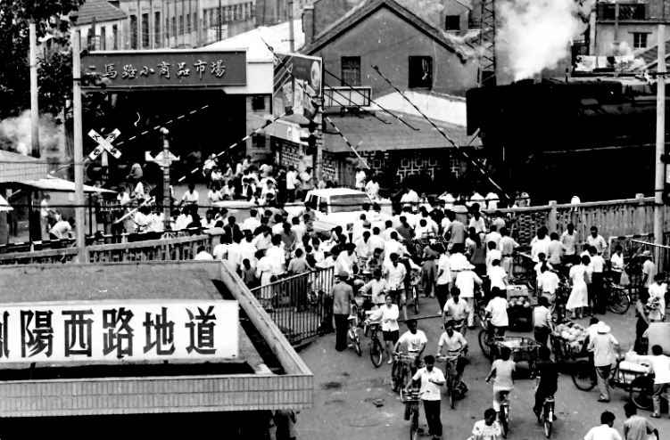 ▲上世纪90年代二马路小商品市场的景象。王新民 摄