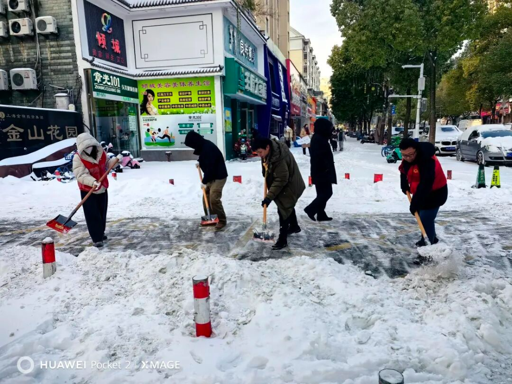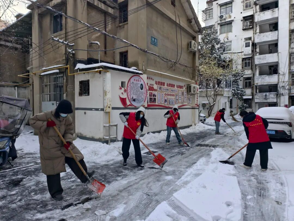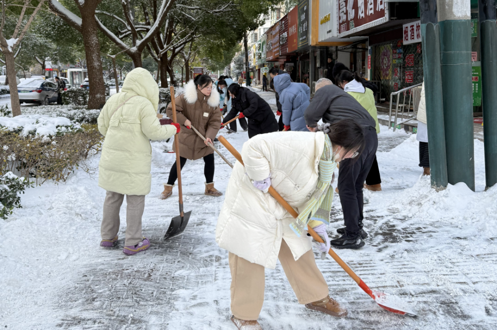 龙湖新村街道团工委、青年突击队、各社区团支部参与铲雪志愿活动。