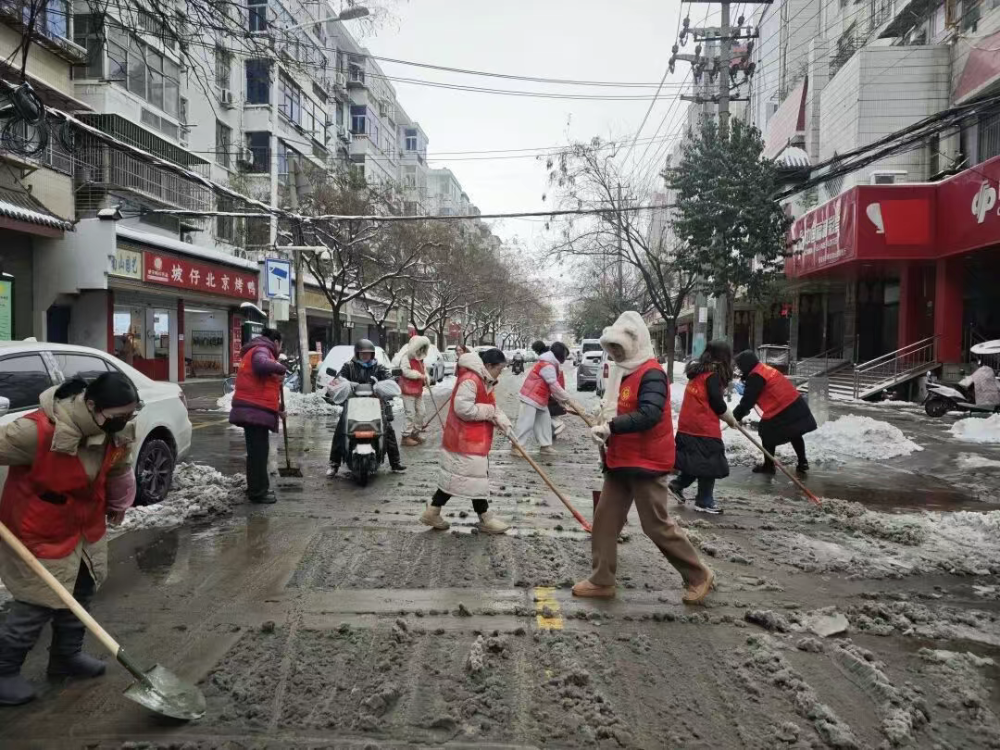 纬二路街道团工委、青年突击队、各社区团支部参与铲雪志愿活动。