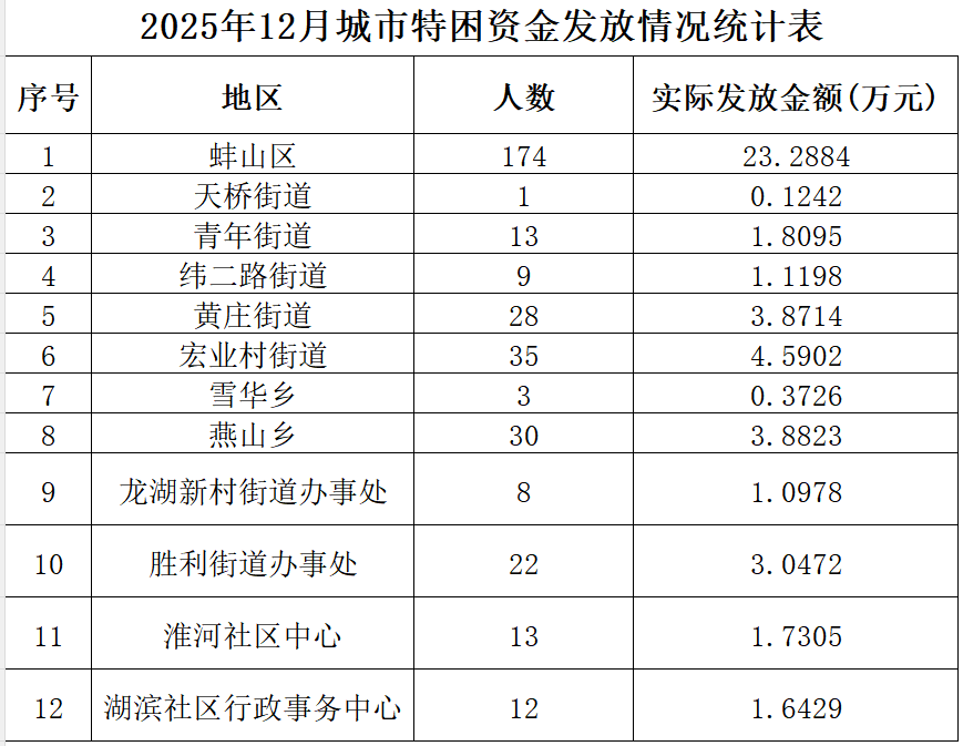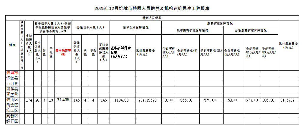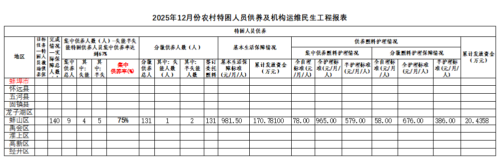 2025年12月特困供养资金使用情况 |