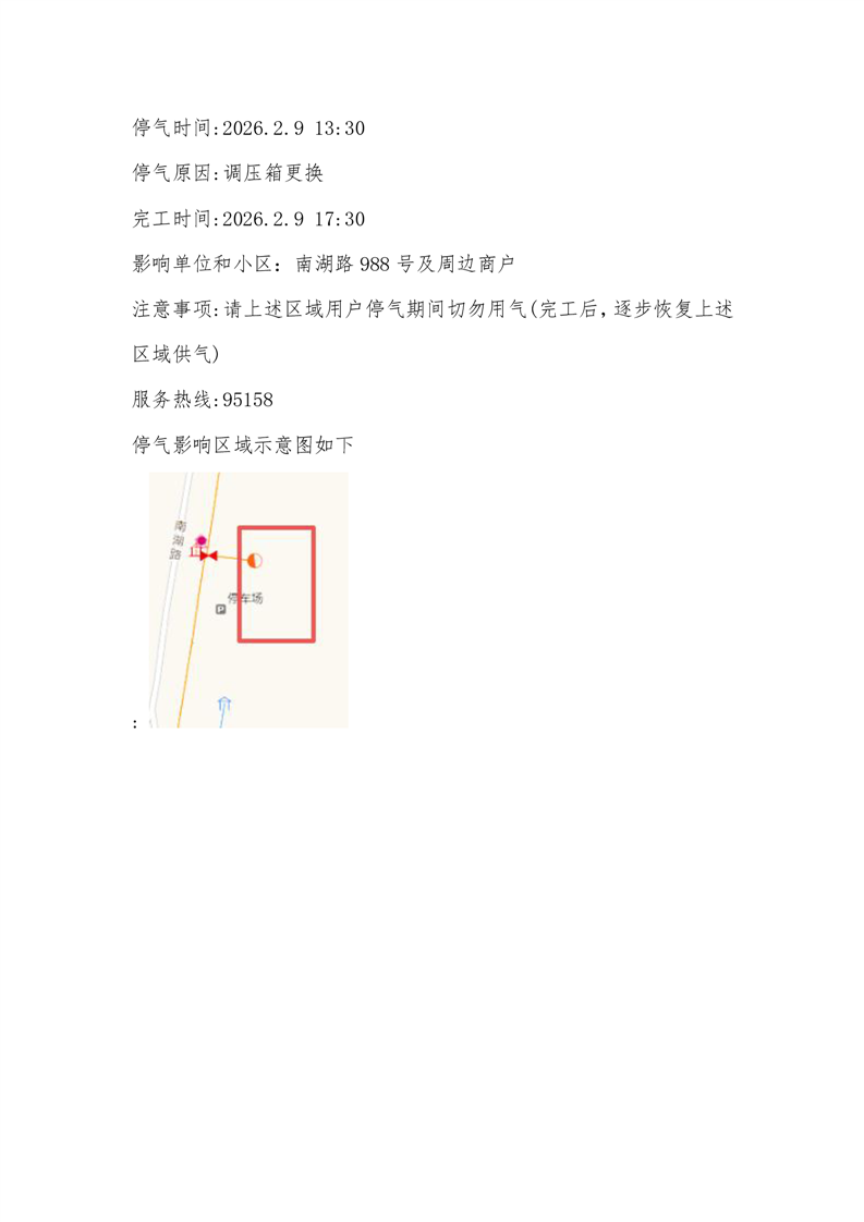 蚌埠新奥燃气停气通知:因调压箱更换,计划2026年2月9日13时30分-17时30分期间停气。停气范围:南湖路988号及周边商户