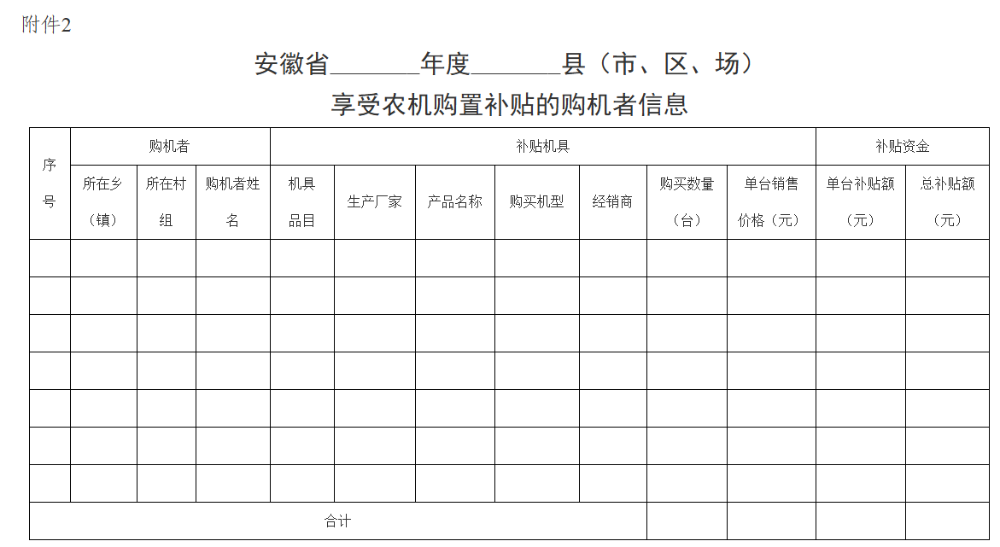 2.安徽省 年度 县(市、区、场)享受农机购置补贴的购机者信息